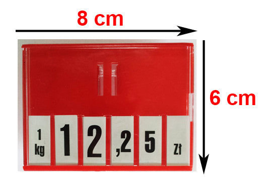 Kazeta s 6 kapsami umožňuje zobrazit cenu atraktivním a snadným způsobem. Materiál: polykarbonát a ABS. Rozměr: 8 cm x 6 cm.