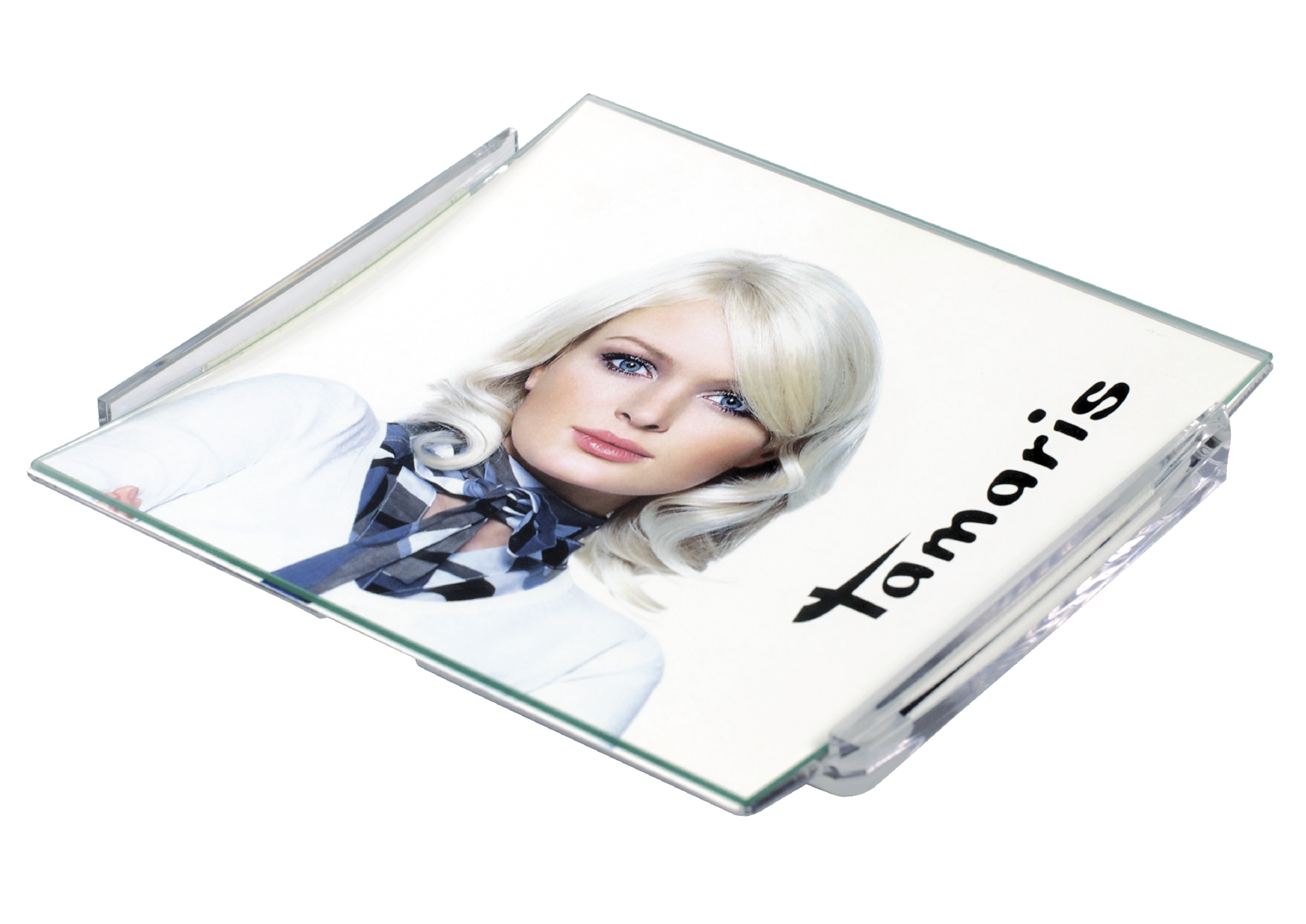 Moderní hranatá podložka s odolným skleněným povrchem. Vhodná pro pokladny, pulty a recepce.
