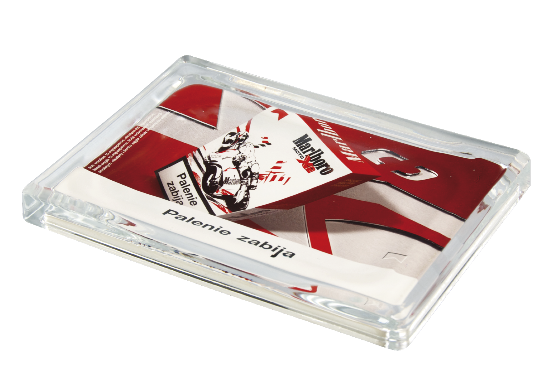 Praktická pokladní podložka z litého skla s možností reklamy. Odolná proti poškrábání, vhodná pro obchody a pulty.