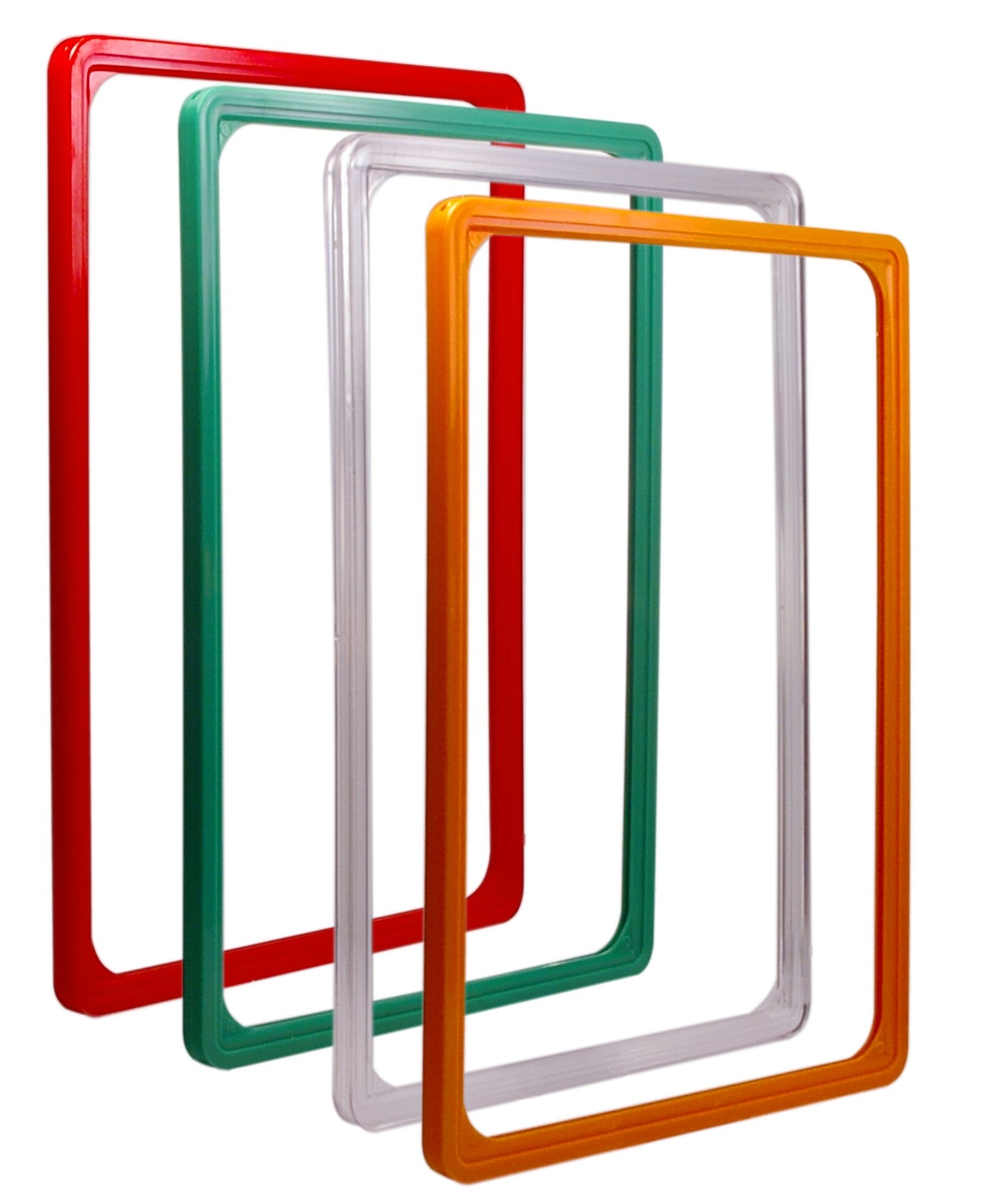 Pro stabilní umístění se plakát umístí do kapsy na plakát, poté se vloží do rámu (na kratší straně) a pomocí přídavných držáků se může vystavit kdekoliv. Materiál: odolný plast ABS. Rám je dostupný v 6 velikostech (A1 až A6) ve standardních barvách. Cena za balení.