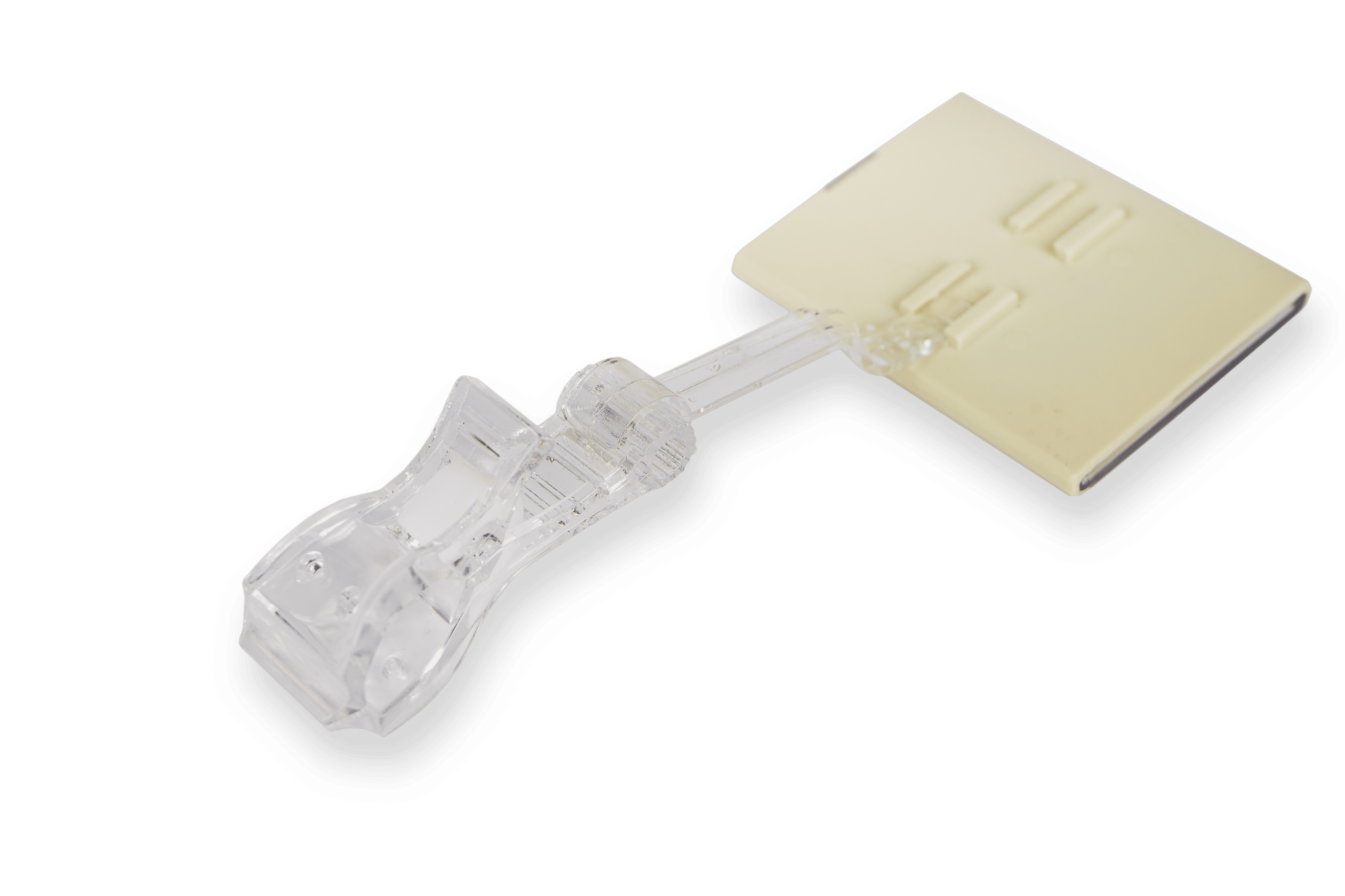 Transparentní sponový držák k uchycení cenovkové kazety s maximálním rozpětím 30mm. Cenovková kazeta se prodává samostatně.