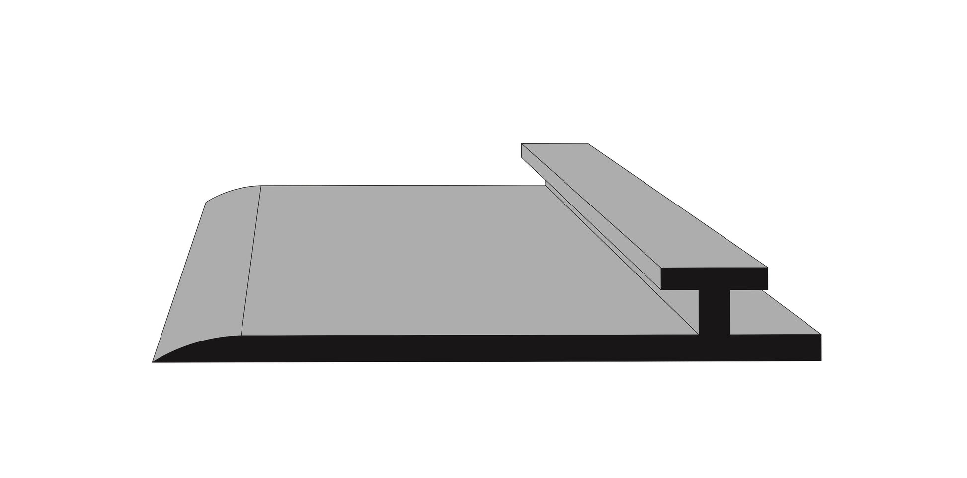 Kolejnice typu T slouží k podepření přepážky stojanu. Je nalepena na stojanu pomocí lepicí pásky a její připevnění je možné na přední nebo zadní část regálu. Materiál: PCV.
